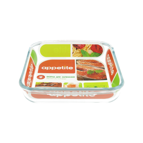 Стеклянная форма ТМ Appetite выполнена из экологически чистого жаропрочного стекла и подходит для приготовления тушёных, томлёных, запечённых блюд, а также их разогрева. Стекло - самый безопасный для здоровья материал. Посуда из стекла не вступает в реакцию с готовящейся пищей, а потому не выделяет никаких вредных веществ, не подвергается воздействию кислот и солей. Из-за невысокой теплопроводности пища в стеклянной посуде гораздо медленнее остывает. Используя такую форму, вы можете не только приготовить в ней пищу, но и подать ее к столу, не меняя посуды. Благодаря гладкой идеально ровной поверхности посуда легко моется. Допускается нагрев посуды до 400С. Данная форма не подходит для открытого огня, только СВЧ и любая духовка. Можно использовать для хранения в холодильнике и морозильной камере. Можно мыть в посудомоечной машине. Выдерживает экстремальные температуры от -40 ° C до + 400 ° C- Устойчиво к термальному шоку (резкому перепаду температур) до 180 ° C.